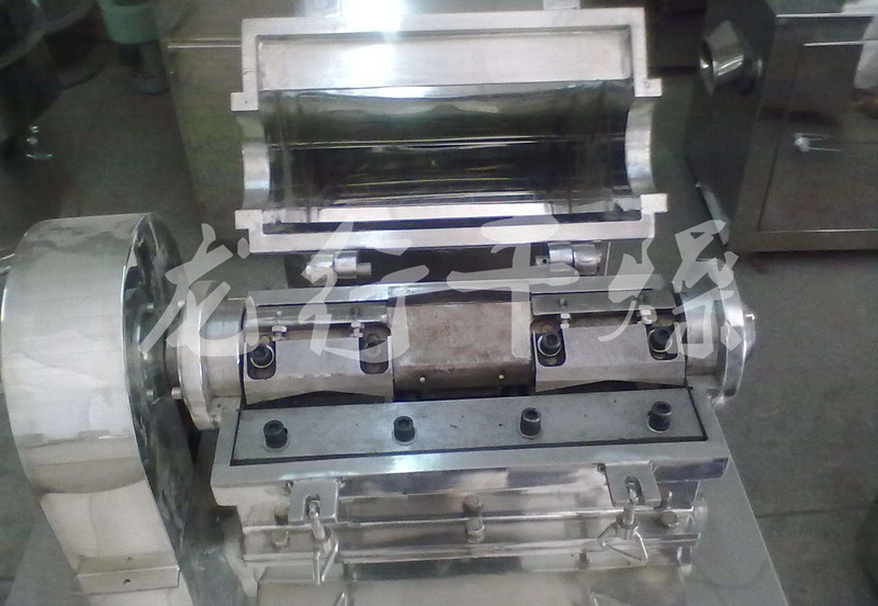 物料由进料斗送进粉碎室,经刀刃和刀座的冲击,旋转刀和固定刀同时剪切粉碎,由于受到旋转离心力的作用,物料自动从出口处流出。